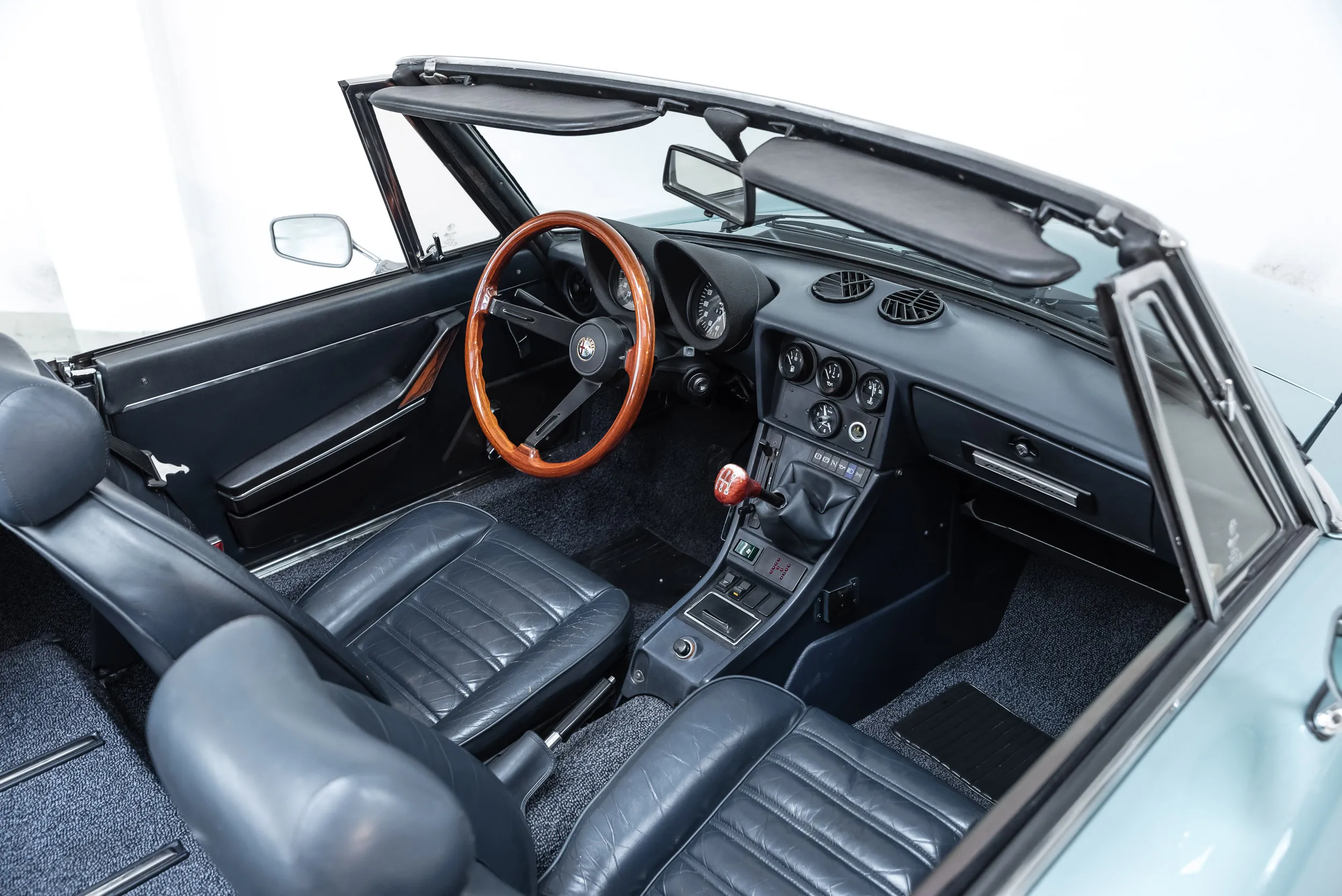 Apart from the Italian flair and technique, this Spider is extra unique; it is an original Dutch delivered Spider which is fully documented. The mileage (79 thousand kilometres) and colour (ice blue with black leather interior) are the arguments that also answer your rational thinking. Outside it is a very nice driver's car, also a good investment!