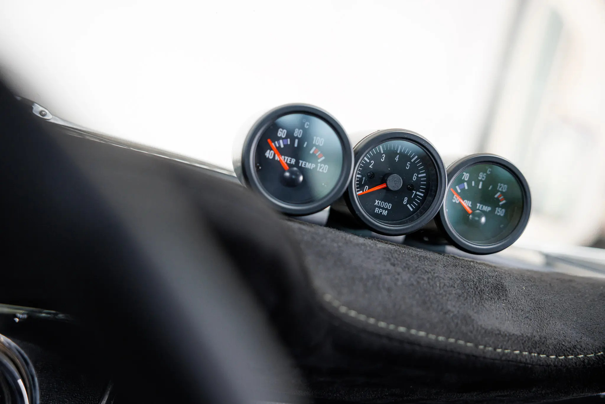 Step inside, and you enter a cockpit where old-school charm meets modern craftsmanship. The entire interior is hand-trimmed in Alcantara, including stitching, custom floor panels, headliner, and fully period-correct Recaro seats. Not to mention the Kevlar hood. American-made performance wheels complete the look. With a comprehensive archive of restoration photos—enough to crash a computer—and all receipts, the documentation is complete.