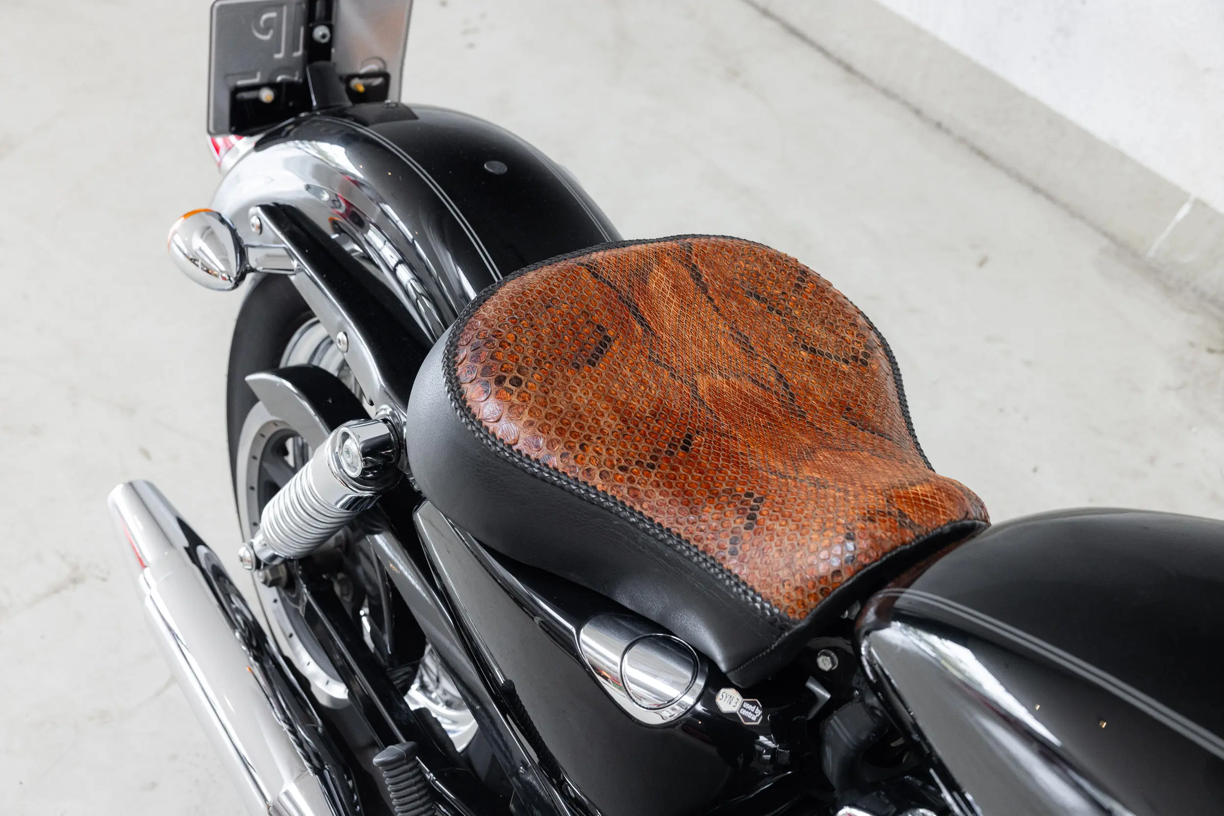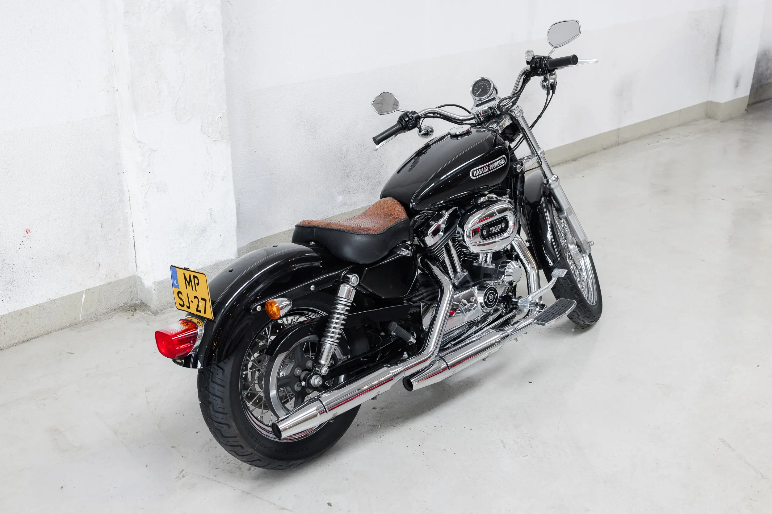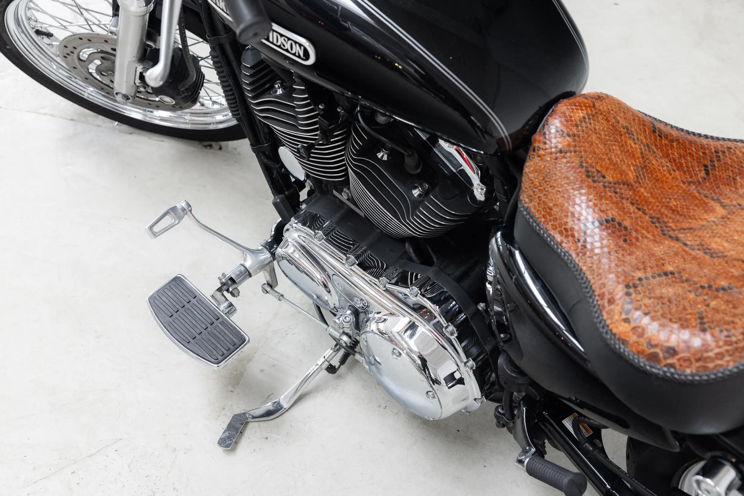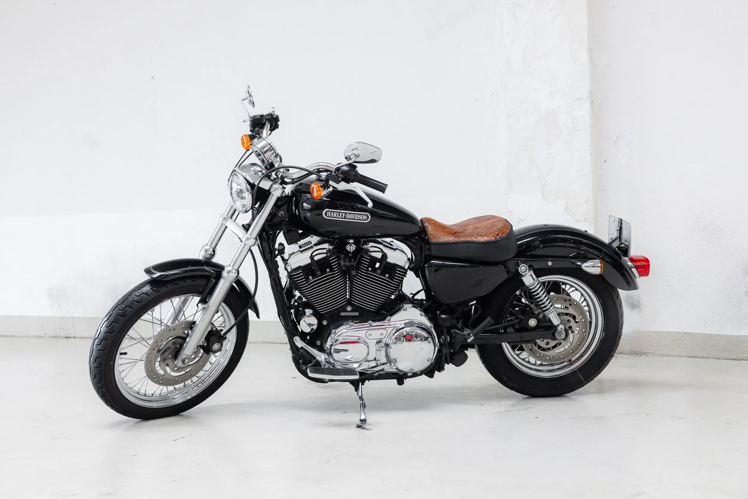 In terms of style and comfort, this is the Sportster you want: low seat height, perfect for longer rides, and equipped with a snakeskin solo seat plus an additional passenger seat — so you can cruise in style, solo or two-up.