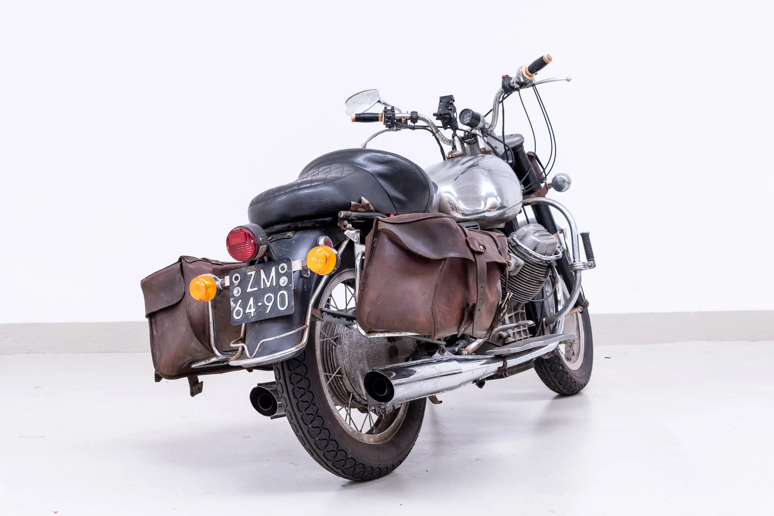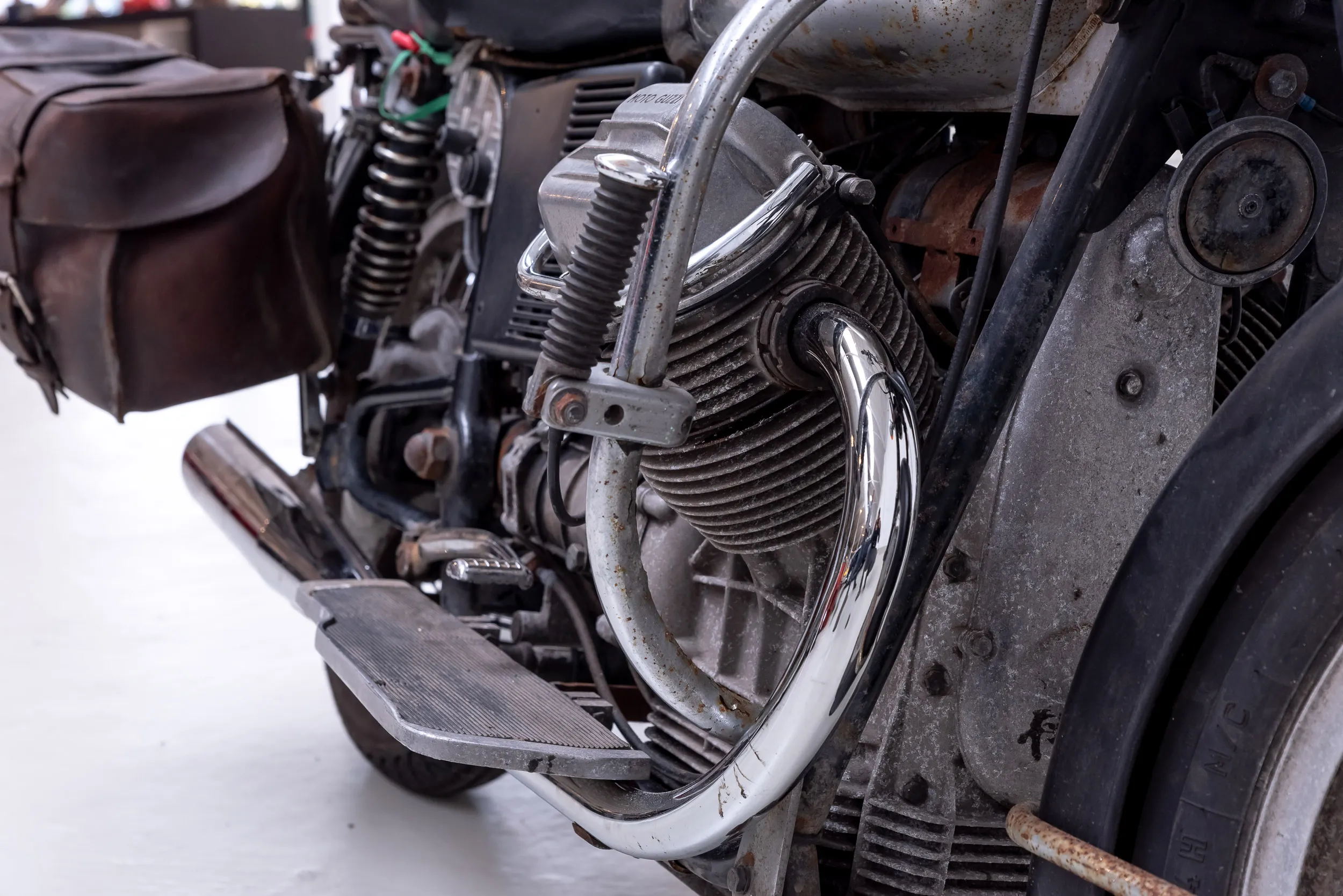 The engine is technically and electronically in very good condition. Since the engine overhaul and gearbox overhaul, the Guzzi has covered only 30,000 kilometers. During the overhaul much attention has been paid to preventing technical problems. For example, the crankcase has been made suitable for an oil filter, the carburetors have been renewed, modern switches have been placed on the handlebars and the throttle lever has been replaced by a Tommaselli throttle lever (which makes the chance of cable breaks much smaller). The bike also has some wonderful and practical details, such as the long running boards, a windshield, long side stand, ground switch, 12V outlet and tank bag. Several years ago two more beautiful Lafranconi exhaust mufflers were purchased. These were recently installed along with a new battery.