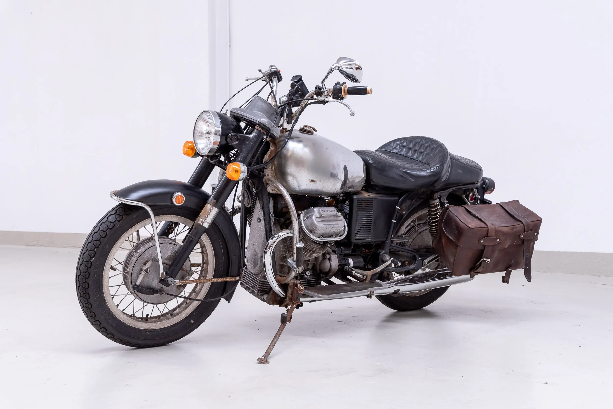 The Moto Guzzi V7 Ambassador has been owned by the current owner since 2006. In 2007 & 2008 completely restored in collaboration with Moto Guzzi specialist Jan Robers Motoren: the engine (now 850cc), gearbox and shaft were overhauled, the frame was powder coated, all parts on and to the engine were replaced and the wiring harness was renewed. New front and rear shocks have also been fitted and the brakes have been overhauled. This was done to make the motorcycle "travel" ready to ride to Beijing via the Silk Road. After the trip, the bike was again completely overhauled by Jan Robers. Since then, the bike has been used very little.