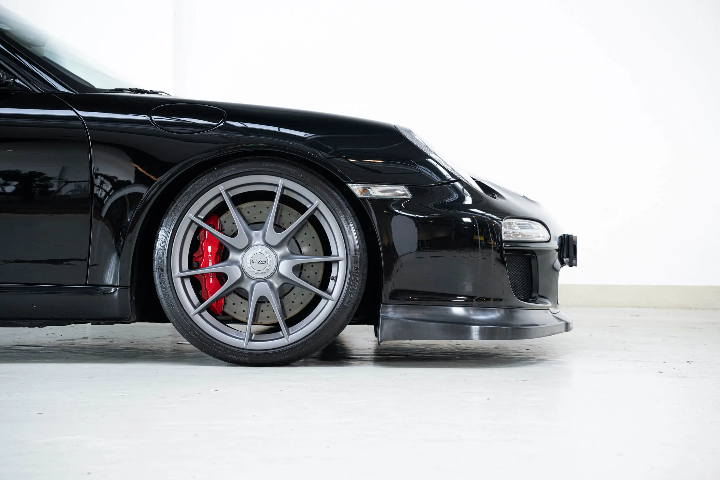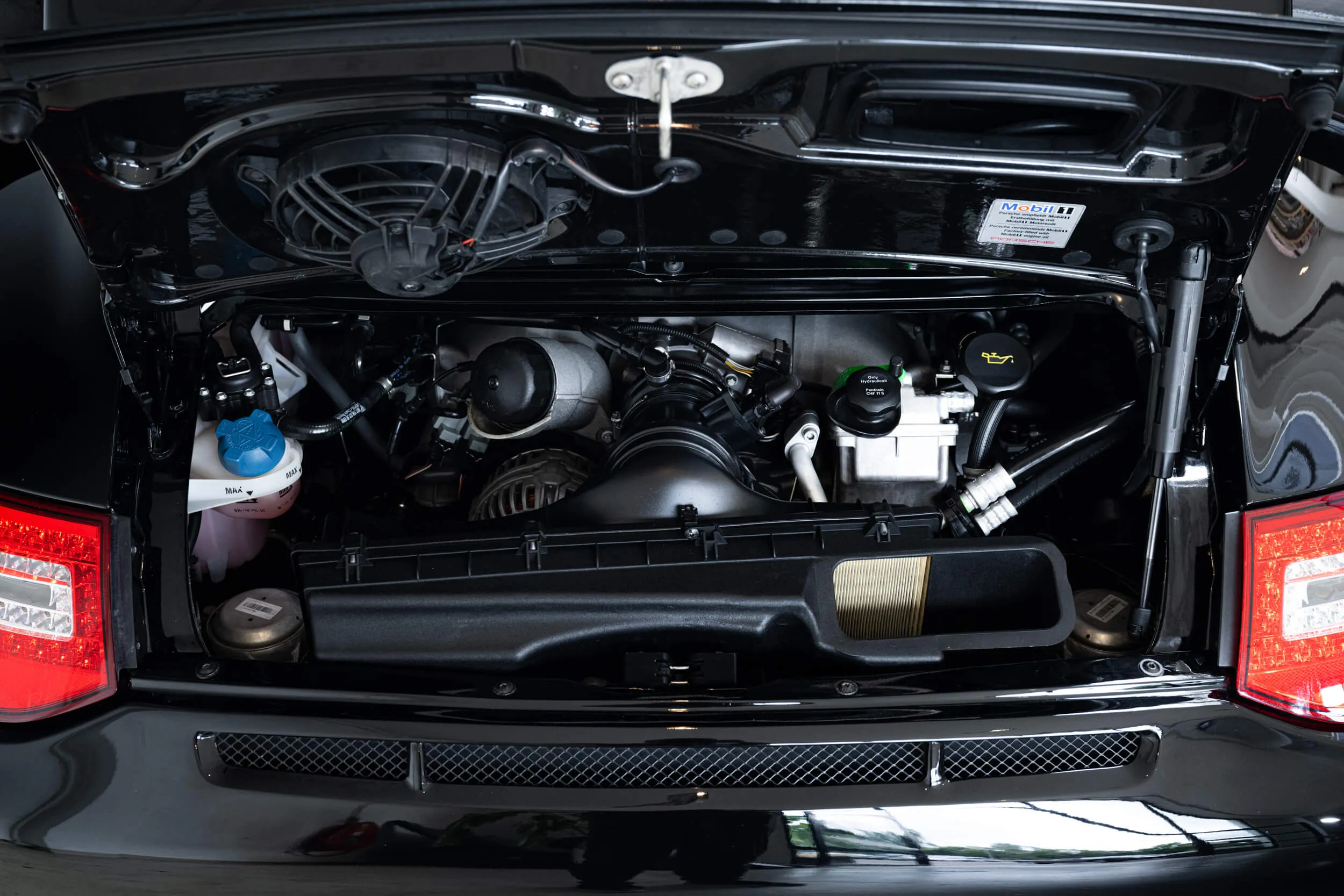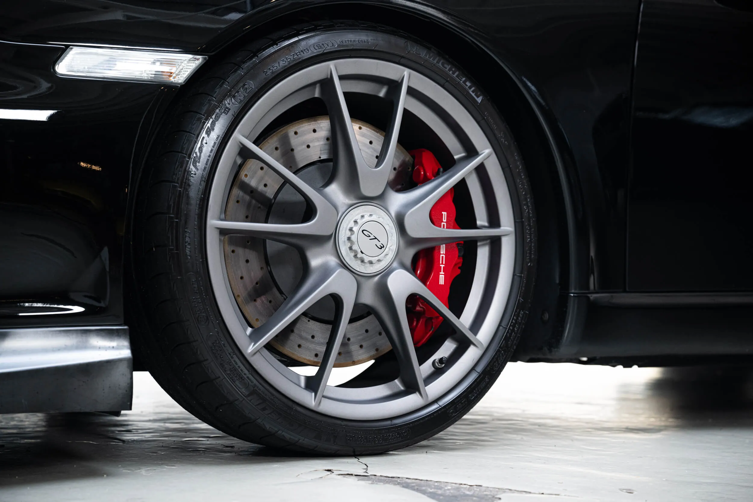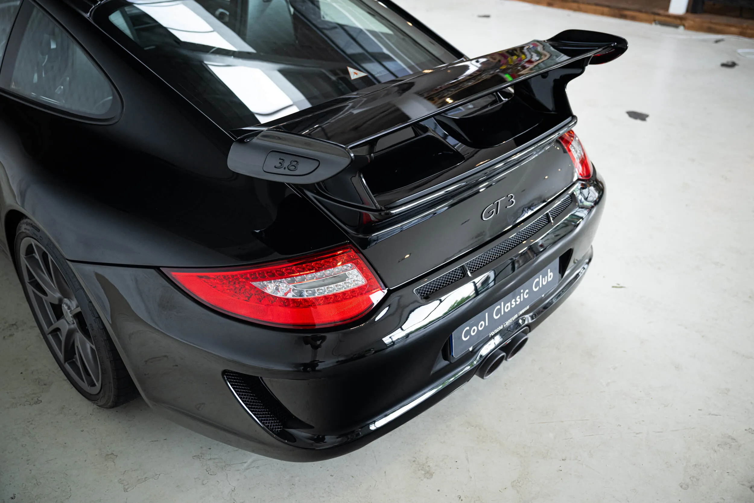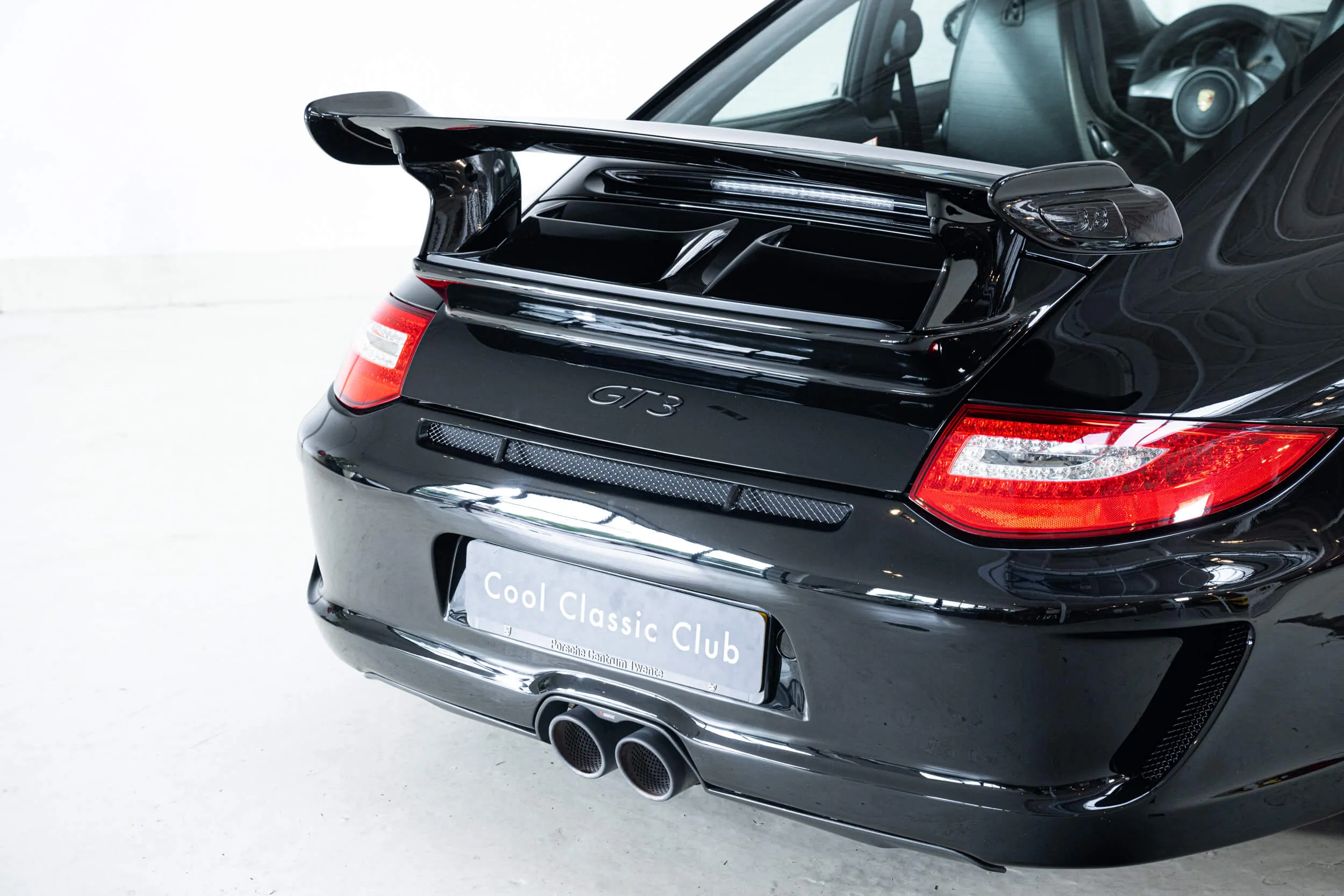 The front already reveals that this is no "ordinary" 911 . As soon as you walk alongside, the nicely shaped ironing board on the back already gives things away. No Roderick, that's not a tie-down strap for the golf bag. That is downforce, something you really need with this machine! The 3.8 boxer received an additional 15 HP after the facelift, bringing the total up to 450 lapping horses from the Stuttgart stable.