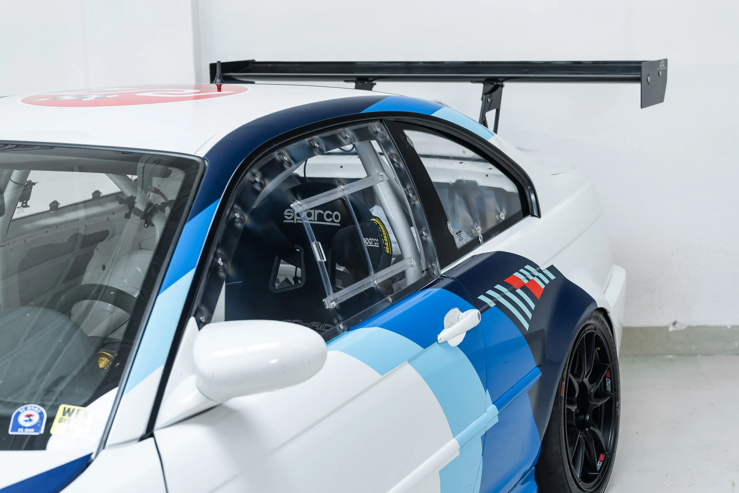 Außerdem wurden ein Rennlenkrad, ein Sitz (Sparco) und 6-Punkt-Gurte eingebaut.