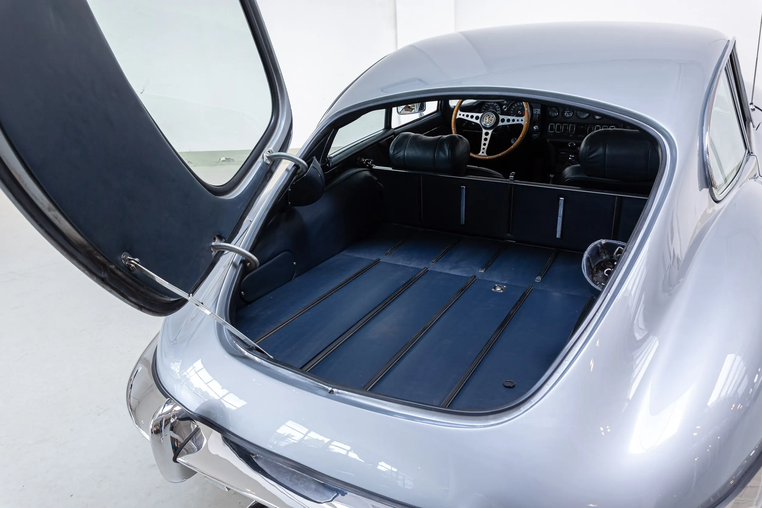 Das Ergebnis ist ein wunderschöner E-Type 4.2 FHC Serie 2 in Warwick Metallic Grau. Die Lackierung ist wunderschön und alle Chromteile glänzen wie damals im Jahr '65. Technisch ist er bereit für viele Rallyes und lange Ausfahrten. Jetzt braucht er nur noch einen neuen Besitzer, der sich mit der gleichen Präzision um ihn kümmert.